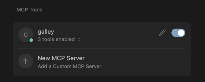 Mutations are disabled by default. You can adjust if you would like your AI agent to be able to create, update, and delete your Galley data.
