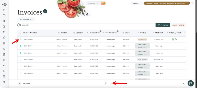 Buffet Style: In the Invoice List, select multiple invoices and click Reprocess in the bulk action bar.
