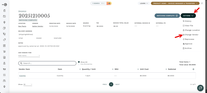 1. Change Invoice Vendor Mapped an invoice to "Produce Guy A" when it was actually "Produce Guy B"?