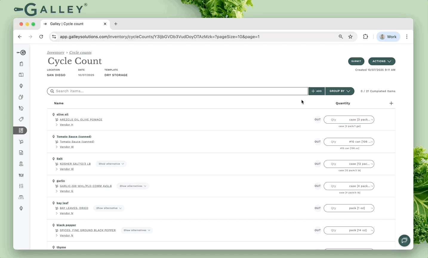 Press Enter on a quantity field to move to the next item, or Shift + Enter for the previous item. At page boundaries, these shortcuts automatically continue to the next or previous page.